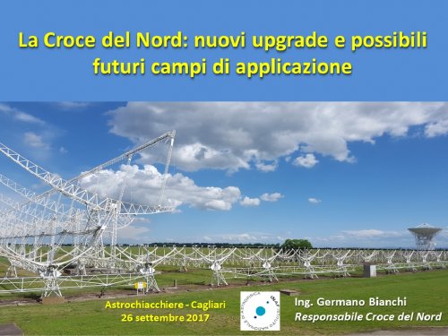 The upgrades made in recent years to the Northern Cross, and still ongoing on the North-South branch, have improved the characteristics of the Medicinese antenna, making it attractive for new fields of application. For example, thanks to its high sensitivity, wider field of view and new multibeam system, in 2015 it was selected by the European Community for monitoring space debris. These improvements could renew interest in the use of the Croce del Nord in the scientific field, especially for research and the study of low-frequency phenomena.
